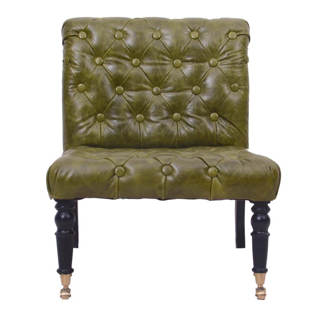 Manhattan Green Tufted Leather Slipper Chair | Chairish, image source: chairish-prod.global.ssl.fastly.net